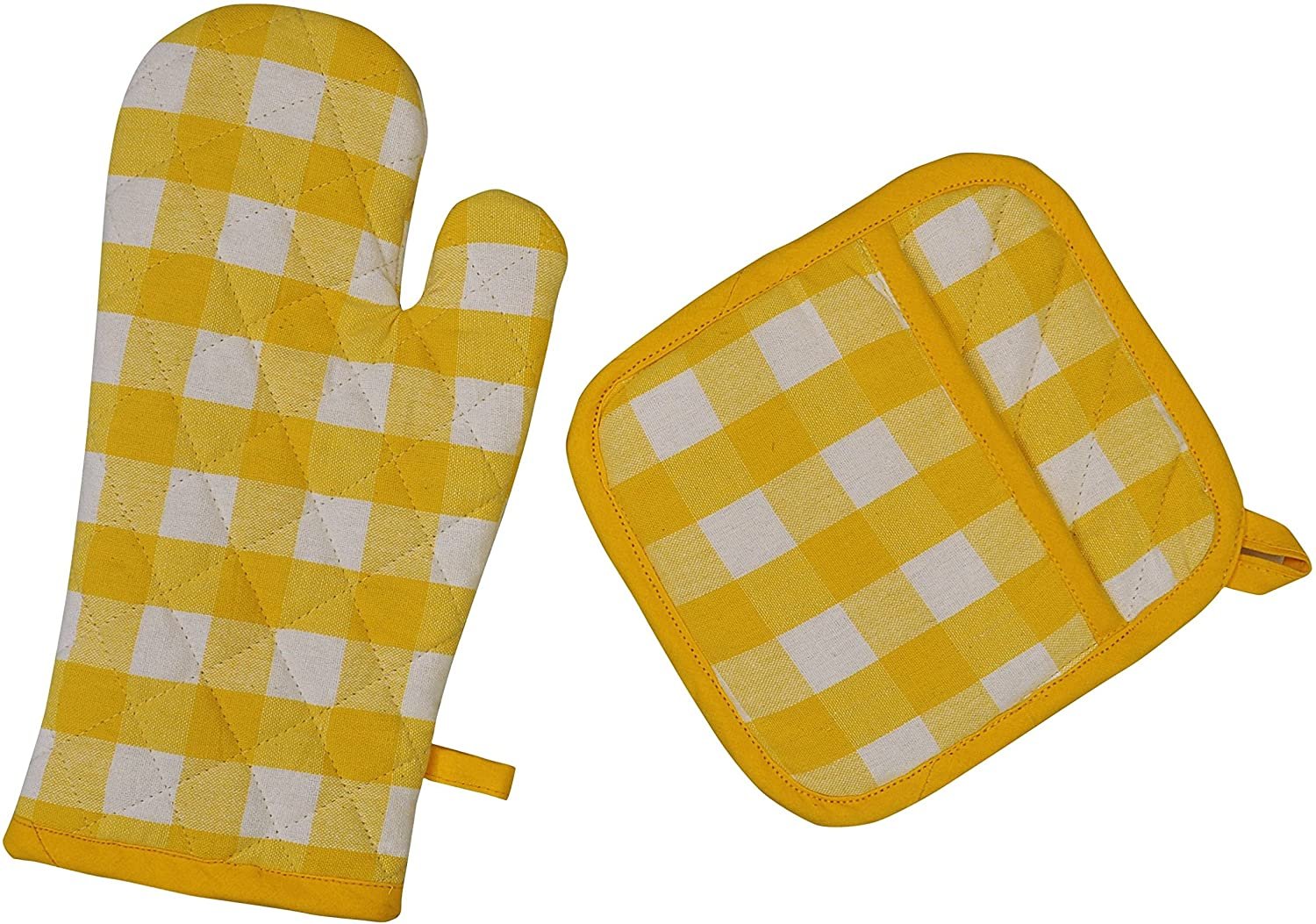 Yourtablecloth Set Of Checkered Oven Mitt And Pot Holder Or Oven Gloves 100 Cotton Heat Resistance Superior Protection Comfortgingham Design Machine Washable Yellow And White Walmart Com