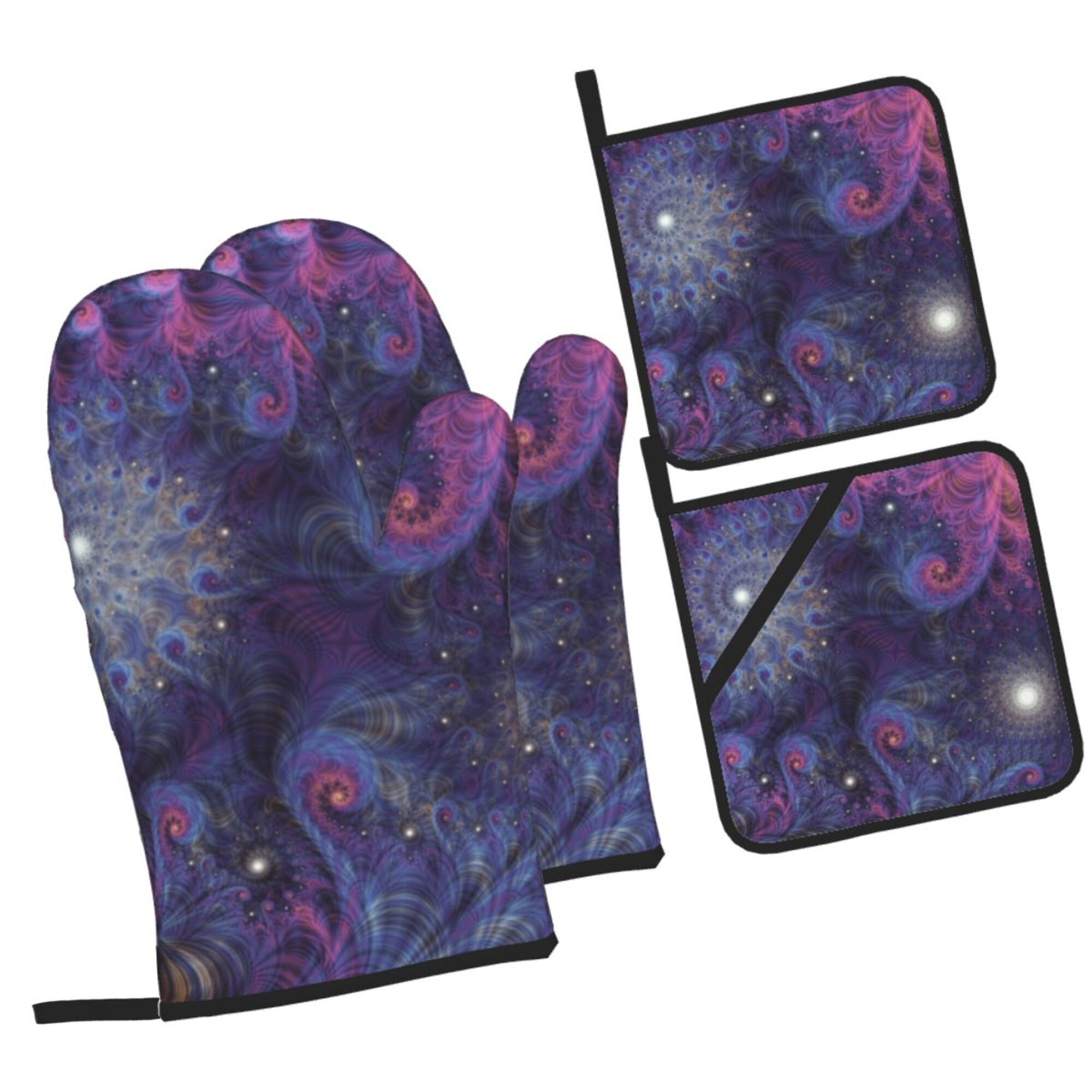 Zicancn Oven Mitts And Pot Holders Sets Purple Fractal Spiral Design Baking Sets Kitchen Heat Resistant 4 Pieces Walmart Com